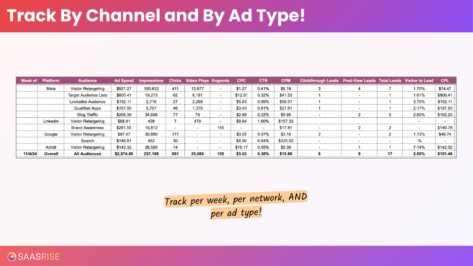 Every week, look at your CPL and CAC by channel and reallocate your budget: