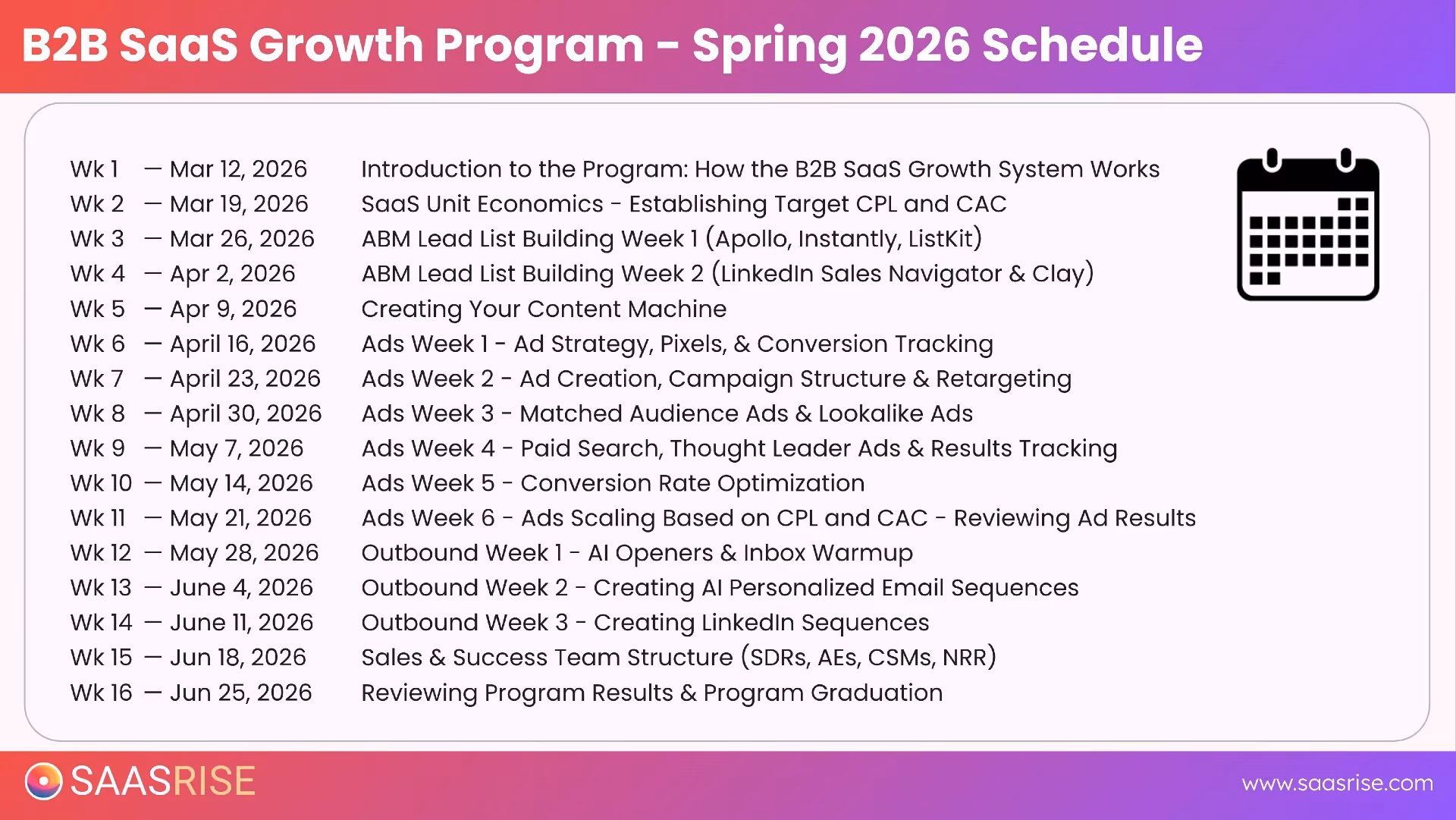 This is designed to be the best program in the world for rapidly scaling a SaaS company and preparing for a $100M+ exit.