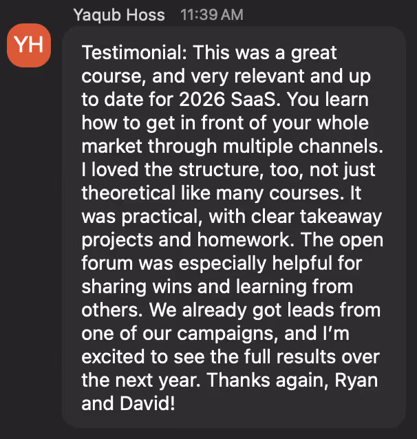 Ryan first of all thank you for the putting together the SaaS Growth Program. This program is worth every penny. On our debrief yesterday with the team I shared that throughout my career usually these sort of programs (consultants etc) have little impact, however this program was top notch and is making an impact.